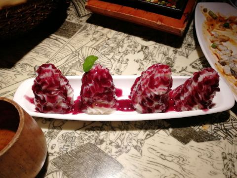 果木架烤鸭,菠萝油条虾,酸菜鱼,蓝莓山药,石锅豆腐,杭儿糖里脊,果木烤鸭三吃,飘摇神仙鸡,酸辣土豆丝,西湖藕韵,腐皮鸡毛菜,焦糖布丁,北京果木烤鸭,石锅焖肉