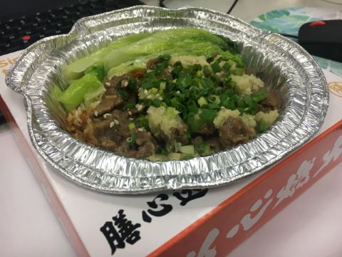 连锁大店,价格比一般的煲仔饭要贵 点的外卖葱花牛肉煲仔饭,加了半只咸蛋人均35那样子 包装蛮有特色的,可以保证够热 打开分量挺足的,煲仔饭本身已经有一些味道,酱油和辣椒都可以根据个人口味再加 牛肉是挺入味的,饭也不错,底部有小小焦的好吃 就是还是一个优点油,其次分量优点多,吃完会很饱,不能经常吃
