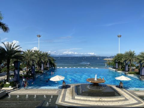 酒店体验很不错,前台的小姐姐Joyce知道我带小孩很贴心的给我们房间准备了小孩的洗漱用品,为小姐姐的贴心点赞👍。整个酒店的有东南亚的感觉椰林树影、蓝天白云碧水、我们订的是海景房,从房间看下去风景超美,早上刚睡醒看到大海和椰林、听着浪花的声音、心情舒畅。而且中餐厅的价格很合理,味道也很好。值得推荐。建议晚上可以去海滩散步、因为酒店晚上海滩是不关灯的,黄色的灯光配海滩漫步绝了。 【环境】 【服务】 【口味】
