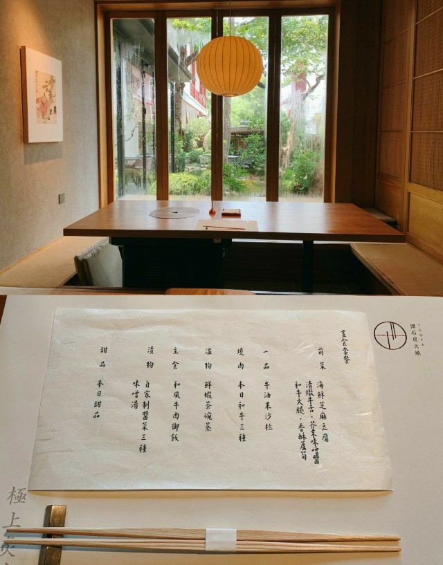 Niaoshan·huaishitanhuoshao种草怀石料理已久,居然是在深圳拔草。茑山离家比较近,附近是锦绣中华,庭院很大看起来很有日式的氛围,中午刚刚坐了面对庭院的包厢,宁静祥和的一人食。 前菜 海鲜芝麻豆腐+马粪海胆 嫩滑香糯充斥着口腔,马粪海胆的鲜甜和芝麻豆腐的软糯口感很好的融合。 清炖牛舌 稍微的腥味配合芥末味味增酱,整个感觉很特别。 和牛火腿香酥芦笋 芦笋特别鲜,脆脆的,和牛火腿肌理感很强,不过芦笋真的特别出色。 和牛三种 烤牛肉真的是让人有幸福感的事情,肥牛五成熟肥肉的脂肪和微微灼烧的口感真的太美妙了。负责接待的小哥哥还告诉我如何搭配柚子黑椒和芥末一起吃不过我还是最爱吃鱼生酱油。芥末是自己现磨,一点都不辣。 和风牛肉御饭 不喜欢吃洋葱的人意外感受到洋葱的清甜,牛肉是西冷肉,米饭是越光米,吃起来很有嚼劲,铺上海苔芝麻。很完美的收尾。 本来甜品是冰淇淋,不想吃冰,给我换了柿子。