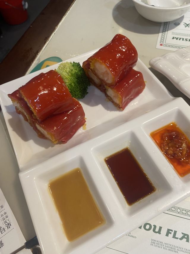 香脆明虾红米肠,豉汁蒸新鲜排骨,红萝卜皮流沙包,xo酱山椒蒸凤爪,广州荔湾艇仔粥,绵香沙爹金钱肚,金枕飘香榴莲酥,顺德大良双皮奶,传统手工炸油条,干炒牛河,凉拌北海墨鱼仔,虾饺,乳鸽,蟹籽鲜虾蒸烧麦,红烧乳鸽,榴莲酥,蘩楼露笋虾饺皇,双皮奶