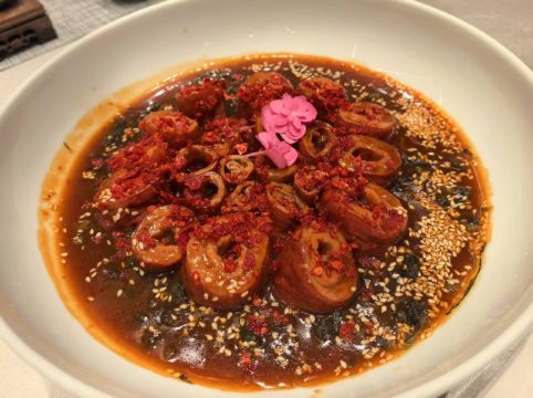 送我们来的司机说,观海是深圳高档餐饮的天花板,我们也挺好奇的,到底好在哪里呢。 因为是姐妹招待,菜都是姐妹自己点的,还考虑到各种口味,上来果然非常不一般,摆盘,作法,味道都是极其用心,匠心独具,不亏威名。 餐后店里黄总监还亲自询问对菜色口味和服务的意见,还送上了新年祝福,真是服务到位[强]