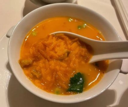这是一家当地知名的港式粤菜餐厅,被众多食客力荐。餐厅的装潢简约大气,菜品的颜值更是令人惊艳。出品做工精细,口味与服务都令人无可挑剔。招牌菜冰烧三层肉,口感细腻,外皮酥脆,口感上乘。