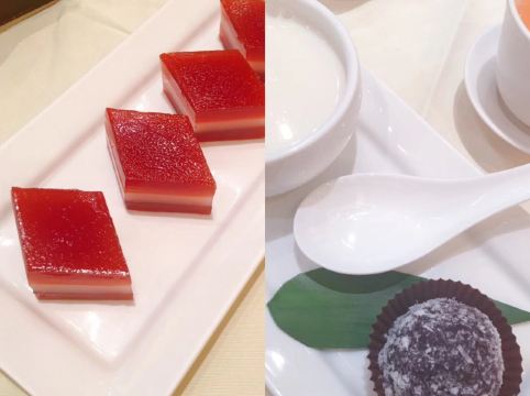 冰烧三层肉,香烧港式乳鸭仔,花胶炖响螺汤,蟹肉龙虾汤包,龙虾面,雪山包,乳鸽,榴莲酥,蟹粉小笼,龙虾汤泡饭,杨枝甘露,蜜汁叉烧,鲍汁风爪,叉烧酥,野菌贡菜饺,虾饺,杏仁茶,蚝皇北菇扣玉掌,梅酱牛仔骨,蟹肉龙虾汤饺,油焗角笋,热情果布丁组合,斗门海花竹虾,浓汤泡白菜仔,金蒜拍青瓜,拿破仑腰果一口酥,小笼包