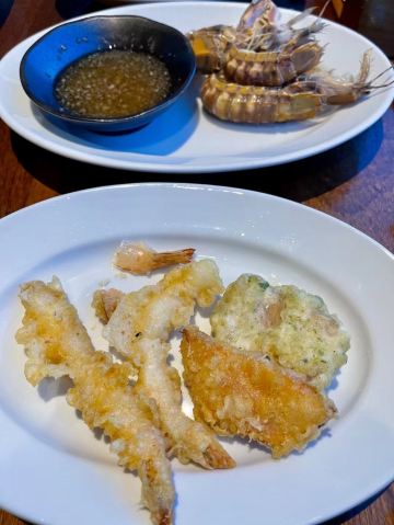 法国现开生蚝,炸虾天妇罗,雪糕,刺身类,甜点,时令海鲜,羊排,鳗鱼饭,龙虾扒,三文鱼,烤牛肋排