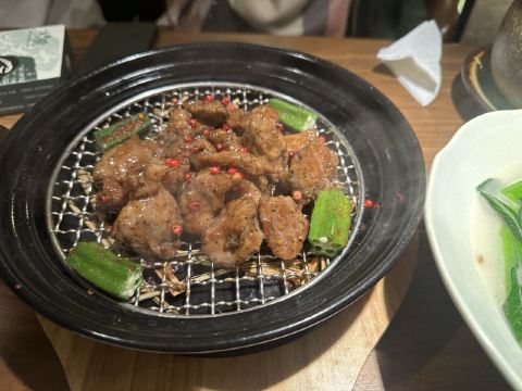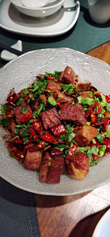 禾秆草烧乳鸽,烧鳗鱼烩饭 ,初恋咕噜肉,龙井烟熏太爷鸡,厚切岩烧牛舌,胡椒啫章鱼须,一颗柠檬,松茸烩饭 matsutake 意大利饭,猪油渣炒菜心,煲仔金沙焗丝瓜,乳鸽,渤海鲍鱼,鲍鱼