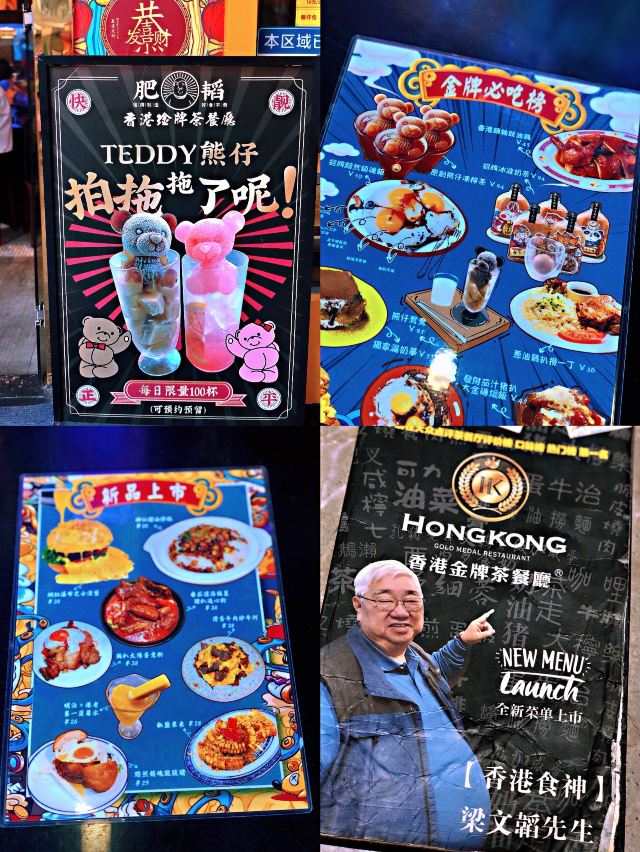 惠灵顿牛排,滑蛋牛肉炒牛河,黯然销魂饭,芝士瀑布牛肉汉堡,原个菠萝油,一口西多士,鸡扒滑蛋菠萝包,明炉烧鹅皇,流沙西多士,大金砖焗饭,漏奶华,小熊冻柠茶,港式奶茶,黯然销魂,国际金茶王冠军奶茶,惠灵顿