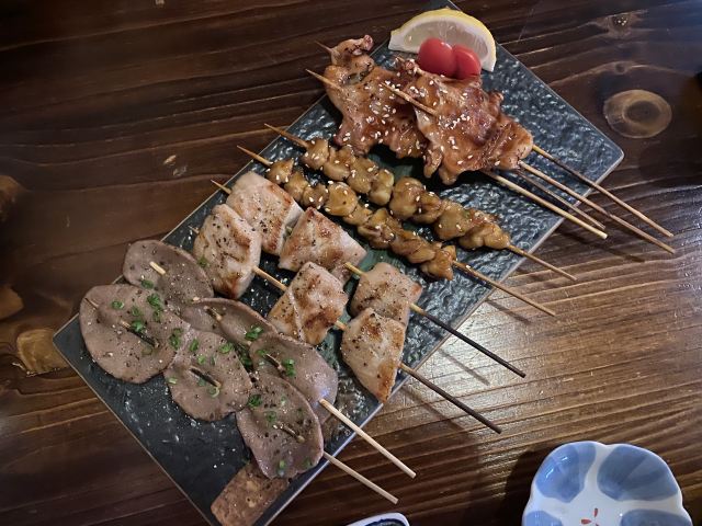 招牌炸鸡,招牌芝士卷,盐烤牛舌串,紫苏鸡脆骨,鳗鱼炒饭,香芒鹅肝寿司,炸鸡,鳗鱼鹅肝饭,烤串,明太子土豆,青花鱼,寿喜锅,土豆泥沙拉,鳗鱼鹅肝饭定食,刺身拼盘,土豆泥