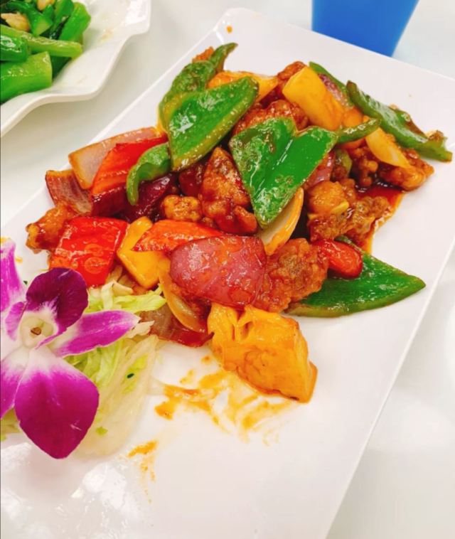 菠萝生炒骨,排骨炸的刚刚好,肉质很嫩,菠萝酸酸的很好吃,酸甜口刚好,很开胃,是下饭的一道好菜。 锡纸红烧鱼,鱼肉紧实,比较入味。 大地鱼片炒芥兰,口味清淡,菜还比较新鲜的。