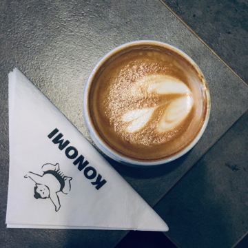 Connie0805在相扑咖啡馆喝杯好咖啡☕️ 日文Konomi是爱好、嗜好的意思,“Konomi Master”的老板因为喜欢咖啡,ㄧ头栽进了咖啡领域,从单纯的喜欢,到成为专业的咖啡达人。背后的努力与心酸所换来的成果,全展示在店里书柜上的咖啡竞赛奖状。 在日本,相扑选手拥有着崇高的地位,这家店特地以插画风的小相扑选手为logo,带出咖啡馆如匠人般的严谨态度。用专业来冲泡每一杯咖啡,提供给来店里休憩的人们。 店里有两个吧台,设备及环境都是依照咖啡竞赛的标准来设计。除提供各式精品及创意咖啡外,平常也是咖啡师们学习切磋的地方。一杯杯有着新意的咖啡,可以带给进店的人不同的味觉与心情体验。 周围都是高耸的办公楼,Konomi刚好位于闹中取静的位置。店不大,清水泥的墙面间有红砖裸露,充满粗犷的工业风。随处可见的小相扑选手,以不同的形象现身店里各个角落,特别讨人喜爱。一到下午,许多白领来这边喝杯咖啡也释放压力。 在咖啡师的推荐下,今天点了杯带有香草与巧克力风味的“童年”。浓郁的香气,让人沉浸其中。 另外还试喝了一小杯有这玫瑰香气的冰滴新品,味道柔和又让人感受到沁心凉,真是好喝。 【口味】:童年牛奶咖啡,香气浓郁 【环境】:工业风,安静 【服务】:专业
