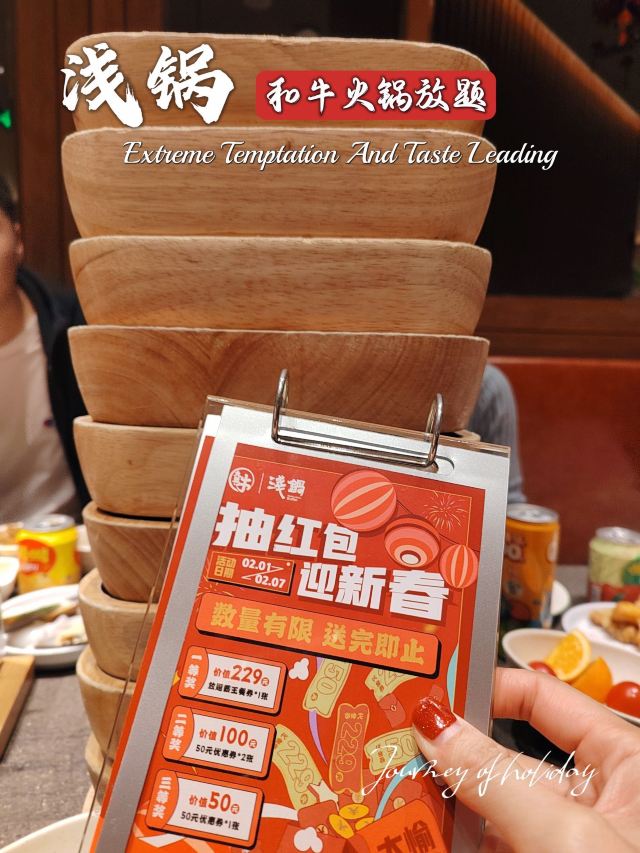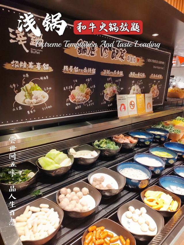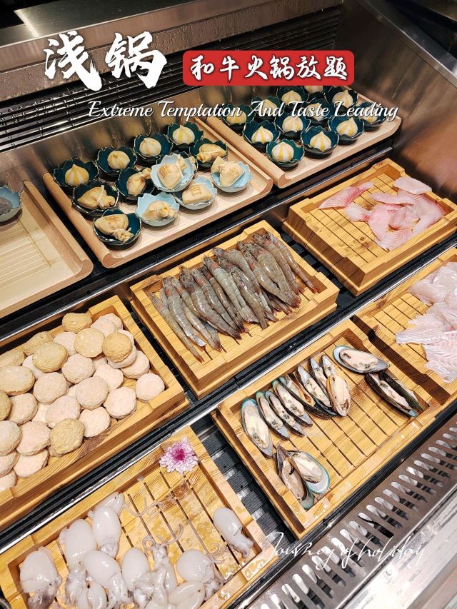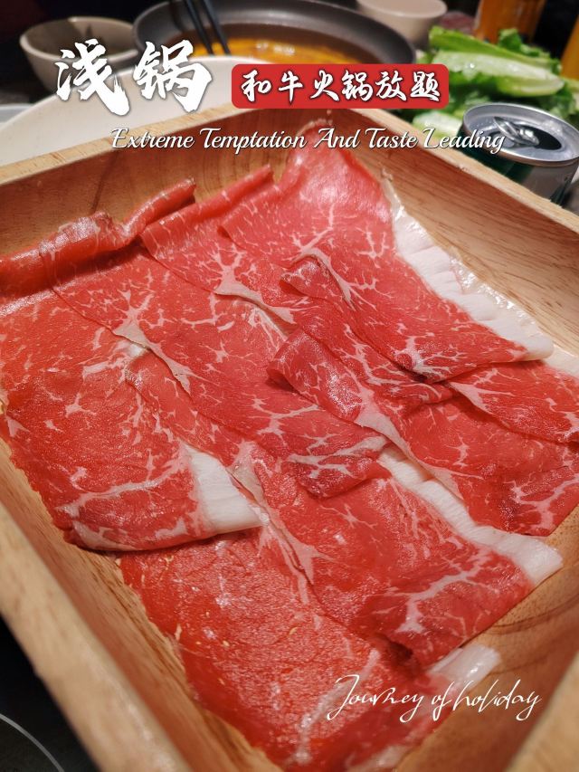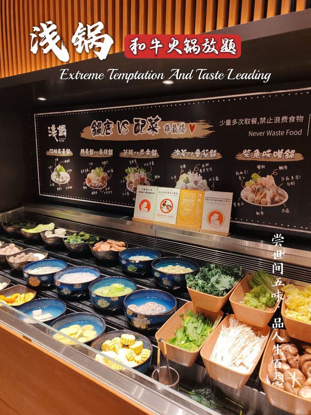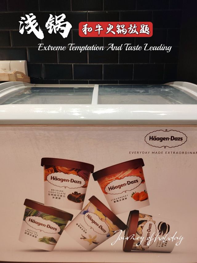 跟着一众食肉壮汉来吃饭,结果我自己吃了9盘肉🥩旁边的“壮汉”:姑娘 看不出来,你挺能吃啊! 我莞尔一笑,端起一碗装了四个球的哈根达斯: 您客气了,这才哪儿到哪儿🌝🌝 讲真,对|浅锅日式和牛小锅放题(卓悦中心店)^印象最好的,真就是这个|澳洲黑毛和牛上脑^和|哈根达斯^冰淇淋了,其他的都是合着规矩来的正常水准,但是大年初六,还是年假依然团购219接待(不少年假日不让用团购价:),且哈根达斯不限量(某渔哈根达斯每人仅限1球),和牛也随点不限量,真是妥妥的良心性价比了,就是鲍鱼没有了,有点不爽,我们可是六点就来吃了🌚🌚 吃和牛嘛,最推荐的还是|寿喜锅^,当然|日式番茄锅汤底^也能配合和牛的风味,昆布锅菌汤锅真心太淡了,麻辣锅更是盖过了和牛的风味,只是吃个口感了 除了和牛,肥牛的品质也不错,蔬菜也比较全,海鲜的话就是🈶而已了,🦐还可以,有个大号丸子不错,饮品也是品类众多,貌似还有看到啤酒🍺 🍦哈根达斯冰淇淋真的好吃,四个口味一样一个球,出于对体重的考虑,没有再续一碗😄最推荐奥利奥那个风味的 真心好吃😋 店面不算大,用餐环境还不错,服务员也就基本上随叫随到,总体来说还是性价比和风味不错的一家,不想排队的小伙伴那就建议早点来哦! 📢店名:浅锅·日式和牛火锅放题(卓悦中心店) 💡营业时间:11:00-21:30 🏠 福田区福华路卓悦中心东区B1层103号 🚆地铁1/10号线 岗厦站B出口190m