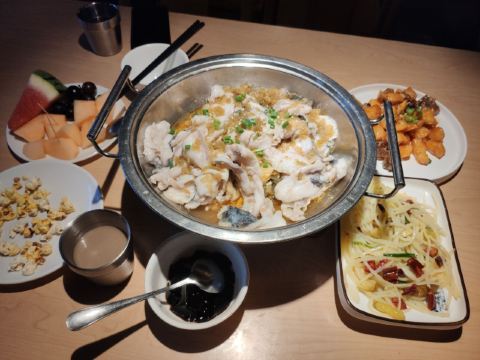 醉排骨,泡椒田鸡,榕城荔枝肉,片片鱼(酱椒味),酸菜鱼,酱骨头,树菇老鸭汤,干锅包菜,酸辣土豆丝,鱼头豆腐,荔枝肉,雪花鸡柳,粉丝蒸扇贝,鸭血肥肠,清炒芦笋,雪津冰啤,苦菜小肠汤,铁锅片片鱼,绿笋龙骨汤
