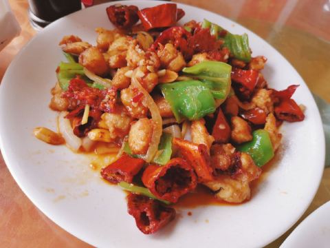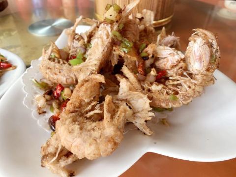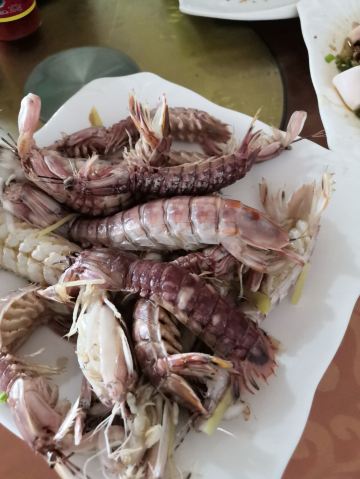 环境不怎么好,不过离景区真的非常近了。 好在菜品口感还不错,而且价位也不高,这还挺让人满意的。 最爱酸菜炒大肠了,这家把这道菜做得真心非常好。不好的地方是皮皮虾做法不好,炸得非常难剥开。