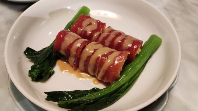 水晶虾饺皇,紫金酱蒸凤爪,冰镇凤梨咕嚕肉,百味乳鸽,樱桃鹅肝,川味口水鸡
