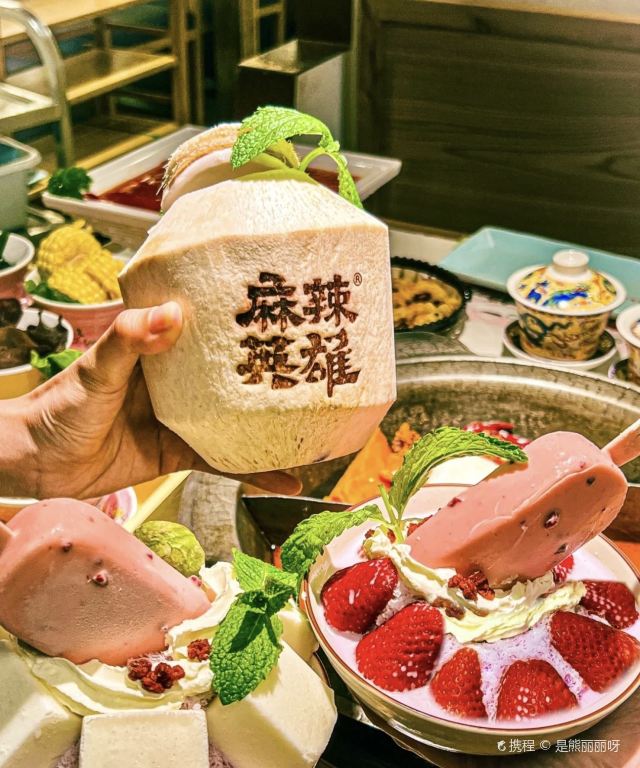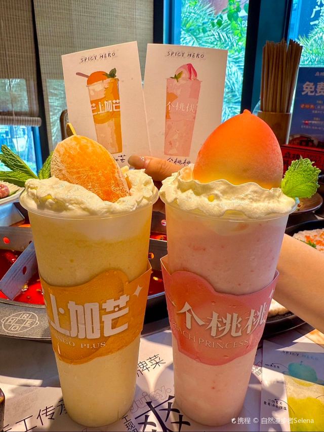 丹2妹子又跟朋友去珠海玩啦,找到一家超正的重庆火锅,店里的桃子和芒果冰沙真的太🉑️了,冲呀~ - ✨甜品都太绝了 . ✔️桃子🍑丨芒果🥭沙冰:仅9.9r就可以拥有,超大一杯,两种口味,一整颗桃子冰淇淋🍑加上奶油顶,喝起来还有淡淡的桃香,好绝。芒果也很好吃,整根芒果果肉,下面的冰沙吃起来也很上头。 . ✔️动物冰淇淋:可可爱爱的冰淇淋还是免费的🆓,小青蛙、小猪🐷、狮子等图案,好治愈,最重要的是还很好吃😋。 . ✔️地标柠檬茶🍋:太有重庆特色了,上面的标签全是重庆的著名地标,解放碑、洪崖洞、磁器口等,口感也很不错,醇厚好喝。 - 🔸人均50+吃地道老火锅 . 他们家火锅味道是真的很不错,我一个重庆人都夸好吃✌️,锅底是比较醇厚的,不算很辣但很香,性价比也蛮高的,一定要点一份【双人九盖碗】,98r吃18个菜,2-3人完全足够了,里面全是重庆火锅必点菜👉毛肚、鸭肠、鸭血、午餐肉等,有荤有素。 - 🔸带珠海几天我们连续去吃了两顿,喜欢吃重庆火锅的集美一定不要错过啦~ - ✌️他们有三家直营店哦 ✨麻辣英雄重庆火锅(珠海玖洲道店) 📍地址:九洲大道西2108号玖洲道购物公园3栋101号 ✨麻辣英雄重庆火锅(珠海拱北店) 📍地址:拱北迎宾南路1155号(中建大厦楼下) ✨麻辣英雄重庆火锅(珠海唐家湾店) 📍地址:唐中路唐家湾港湾1号2栋102商铺