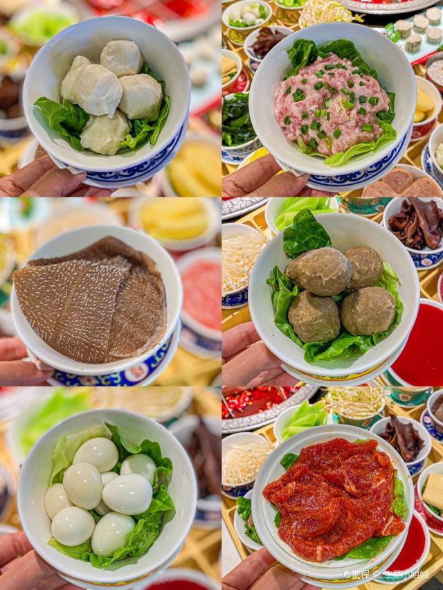 英雄脆毛肚,手打鲜虾滑,极品肥牛,英雄盖世牛肉,现炸酥肉,传承爽鸭血