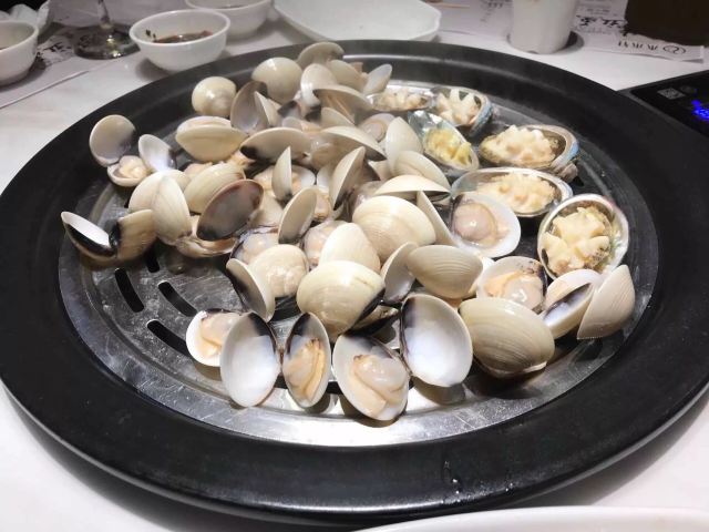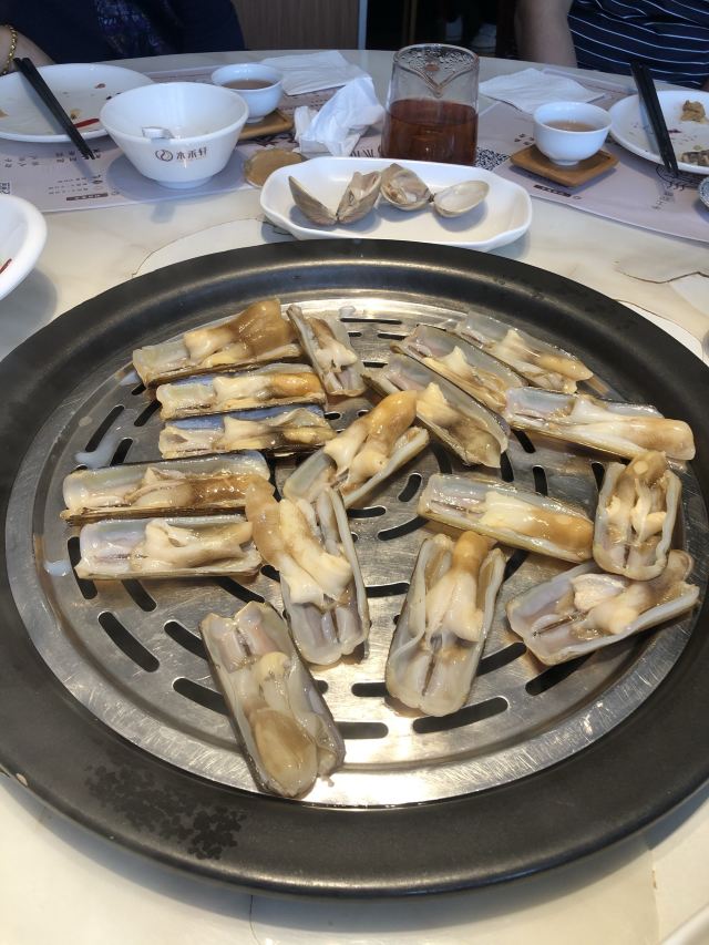 象拔蚌,白贝,雪花牛肉,鲍鱼,海虾,脆肉鲩片,蒸海鲜,西班牙黑毛猪,水禾轩一品鸡,瑶柱排骨粥大份,澳洲牛肉,淮山薏米排骨粥底,丝瓜,文昌鸡,瑶柱排骨粥,玉米,香芋,黑椒黑毛猪
