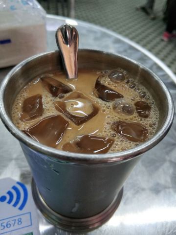 颓记茶餐厅,收藏了很久却一直没去过。下午,特意团了个下午茶去坐一会。 整个餐厅除了墙上没有贴满明星合照之外,很港式风格。 奶茶端上来的时候是没加糖的,桌上有糖浆,一点甜或者比较甜或者非常甜,随意。 猪扒包很大一个,味道很好。
