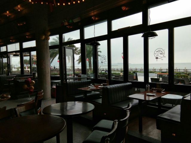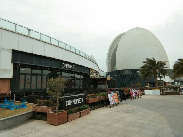 浪漫珠海喝咖啡――二度特意光临珠海野狸岛上日月贝歌剧院近旁的风情连锁酒吧COMMUNE海滨店,顶着呼啸凛冽的北风逆风骑行而来啊!太艰难了啊!