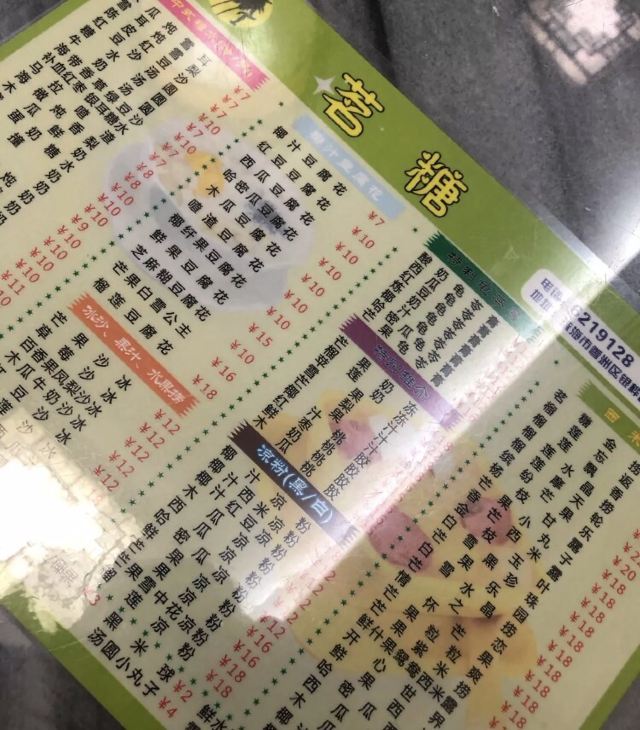 朋友推荐过来吃的,这家糖水店的人气很高啊,一拿起菜单,都是我想吃的甜品。所以点了这里的招牌榴莲忘返和杨枝甘露,味道太棒啦!