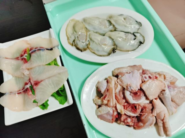 《晓世界》之国内环游篇📍广东 这家店距离住的酒店步行一公里,出发的时候在线排了号,前面有八桌,本以为等走到就差不多了,结果到了以后才进了三桌,虽然是周六,但已经晚上八点啦,最后一共排了一个小时才吃上,出来十点了还有人在排队,生意是真好,门口不停的在开蚝。 【环境】跟我预想中不太一样哈哈,老居民楼底商,上下两层,一共可能就十几桌,怪不得排队进展比较慢。设施真的很老旧了,店里也有点热,讲究就餐环境的恐怕接受不了哈。 【服务】服务倒是很热情周到,耐心介绍吃法,估计看我们是游客怕不太会吃,虽然客人很多,还时不时的进来看看火候好提醒我们。店里还有颜色相近的一猫一狗,一直在门口懒洋洋的,可可爱爱。 【口味】真心不错,也算没辜负排队和忍耐环境了哈。而且价格很实惠哦。 锅底选了|清甜无花果汤底^,毕竟椰子的以前吃椰子鸡尝试过了,无花果做火锅底倒是真第一次见。还是没有让人失望的,确实有一种清甜的味道,而且无花果居然最后煮熟了也挺好吃的。而且一份锅底才15块钱,真的很实惠。 鸡肉有两种,店家说|清远鸡^比较嫩滑,|果园鸡^比较Q弹。如果人多的话,就可以各点一份尝试一下啦,我们只有两个人,权衡了一下还是选了清远鸡。吃下来感觉果然选对了,这个鸡肉真的是非常非常嫩啊!而且油脂比较少,一般我吃鸡的时候不吃鸡皮的,但是这个鸡皮的感觉没有什么鸡油,薄薄一层,吃下去还是比较清爽的。 至于招牌的|现开横琴生蚝^肯定是每桌必点了,但是这个口味因人而异吧,先生觉得非常好吃,可以一口气吃半打,但是我就吃了一个,觉得还是有一点点腥味,需要粘重料才能够盖住。不过生蚝本身确实够肥厚,一口咬下去还是很有满足感的。 |东升脆肉皖鱼片^网上推荐的人也挺多的,但是我觉得这个菜有点失望,这种鱼经常出现土腥味,我们这次吃的也不例外。 至于其他的常规火锅涮料,因为我们晚餐前已经吃了太多其他东西,就没有点,个人感觉还是把有限的胃部空间留给最特色的食物吧。店里大部分的食材都可以点半份,这个真的非常友好,也可以减少浪费。
