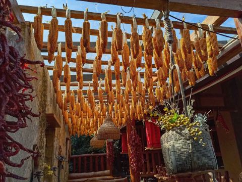 香茅草烤排骨,烤鸭,手抓羊肉,饵块炒腊肉,彝家荞饼,彝家烤鸭,瓦片臭豆腐,饭遭殃,青椒腊肉,瓦片乳饼,彝家大馒头,黄焖鸡,乳饼,荞饼,豌豆尖豆腐汤,青椒牛干巴,生态大馒头