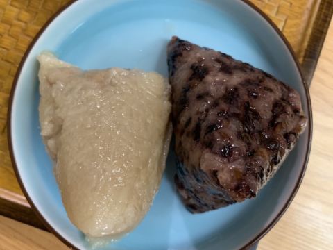 Zhenzhenlaolaozongzi (yuehe)嘉兴美食|真真老老还是要吃现包的粽子 👉店铺名:真真老老本铺(旗舰店) 📍地址:浙江省嘉兴市中基路73号 🕙营业时间:8:30-20:00 [薄荷]环境: 店铺非常有特色,位于月河历史街区,当然这条路上有好几家真真老老,这家是旗舰店。 现包的粽子就整齐的码在那里,还可以看到阿姨现包粽子。手法熟练,动作迅速。店里的粽子都是煮好的,可以选择堂食,也可以外带。阿姨会把剥好的粽子放在纸盒里,就可以带走吃了。 说说传人粽和普通粽的区别。咸口传人粽也是高汤粽,糯米是白的,不放酱油,考高汤浸泡吊鲜味,肉也是没有新鲜五花肉。所以价格比普通肉粽贵。 🌟传人笋尖肉粽 15¥ 3.5/5 高汤粽,所以是白色的。肉比那种真空包装的软很多,笋干是硬的,口感不好。糯米非常糯,也很咸,有若叶的香气。 🌟传人腐乳肉粽 15¥ 4/5 糯米很紧,确实是腐乳肉,不过吃不出腐乳味,精肥相间,肥肉入口即化,肉不会很硬。鲜是很鲜,有点咸。 🌟传人双黄肉粽 15¥ 3.5/5 肉一小块,不软,有点硬。两个蛋黄有点硬,糯米糯,味道很鲜。 🌟传人肉粽 14¥ 3.5/5 肉会多一点,味道差不多。 🌟蛋黄肉粽 10¥ 3.5/5 有酱油的,感觉没有传人的高汤咸,咸蛋黄芯子太硬,用的五花肉,相对也软一点。肥肉散发出猪肉的香气。个人感觉便宜的酱油版粽子性价比更高。