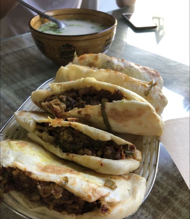 这家属于河间派驴肉火烧,驴肉火烧分为保定的发面圆火烧派别和河间的半发面长火烧派别,整体感觉还是这家的长火烧好吃,吃起来更加酥脆可口。
