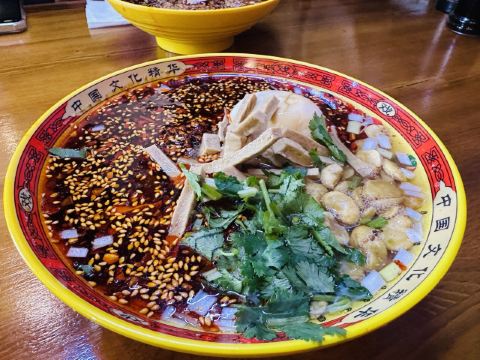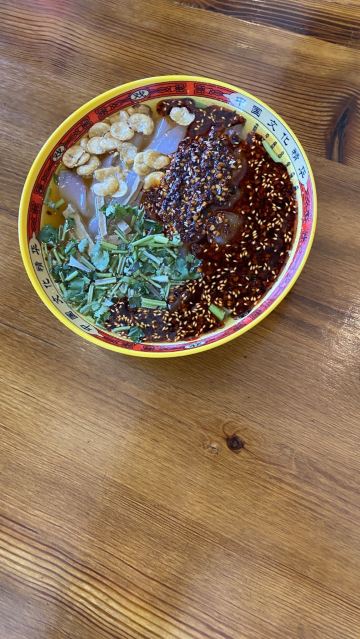 xiao七月被朋友强行安利,已经跟我夸我天际了,赶紧去。 位置:第一次来有些不好找,问了人知道在关帝庙旁边,就快多了。 环境:一到门口就被吸引了,加快脚步往里走,屋子古色古香,很是喜欢,满分! 口味:味道绝了,我本身不爱吃辣,但是店员说保证不辣,辣了不收钱,看着那一碗红红的辣椒油,心里多少有点胆怯,但我还是决定吃下去,香香的,稍带一点辣味,但是,简直不要太好吃,耐斯!!!我还要了特色馅饼一样很好吃,一口咬下去脆脆的,我喜欢。 服务:很热情,尤其是收银小姐姐。 总体很满意,这次换我安利你们,你们有好吃也可以安利我哦!哦对了,他家还有礼盒可以带哦!
