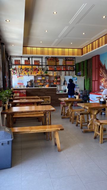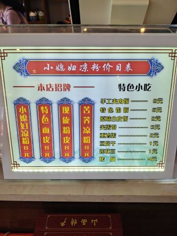 🍃环境: 门店很大,来之前以为是个小店,但来到之后发现被名字误导了,一点都不“小”,在整个古城里都算大店面了。店内很宽敞整洁,充分利用空间摆放了三列餐桌,可以同时容纳50+客人就餐。整体装修上也动了心思,绿植🎍花草和壁画的点缀✍️让整个餐厅提升了美感,点餐区上方巧妙的挂了两列特产架,把店铺特产高高挂起,一目了然。后方墙上的两幅书法书给小店增加了一些人文气息。配餐区和点餐区相邻,能看到店员🧑🍳配餐的全过程,干净放心。 🍴口味: 来这里最好的餐品组合就是1大碗凉粉+1个肉夹馍+1瓶沙棘果汁,基本就把店铺特色全囊括了。凉粉份量很足,软但不会散,搭配着莲花豆、豆腐干和熏鸡蛋🥚,再配上秘制的香辣调味汁,色香味俱全;肉夹馍面饼不厚,面肉比例刚好;沙棘果汁🍹是大同本地特色饮品,品尝起来像果汁,酸口味,清爽解腻。 💁服务: 节假日旺季,客人非常多,但店员照顾的有条不紊,收拾餐桌和上餐上菜都很麻利。老板🧑💼很友好,闲暇的时候还会给我们介绍古城里好玩的地方和好吃的特产,非常nice。 📍位置&交通: 这家店在大同古城的核心地段,离九龙壁、鼓楼和一些网红店非常近,公交🚌和自驾都很方便,如果自驾🚗停车的话可考虑停在九龙壁停车场🅿️步行🚶过来,非节假日时古城内还是很好停车的。