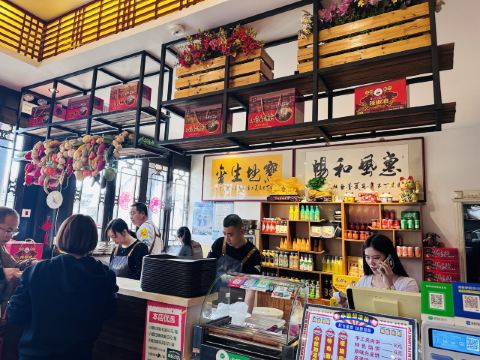 一休哥3🍃环境: 门店很大,来之前以为是个小店,但来到之后发现被名字误导了,一点都不“小”,在整个古城里都算大店面了。店内很宽敞整洁,充分利用空间摆放了三列餐桌,可以同时容纳50+客人就餐。整体装修上也动了心思,绿植🎍花草和壁画的点缀✍️让整个餐厅提升了美感,点餐区上方巧妙的挂了两列特产架,把店铺特产高高挂起,一目了然。后方墙上的两幅书法书给小店增加了一些人文气息。配餐区和点餐区相邻,能看到店员🧑🍳配餐的全过程,干净放心。 🍴口味: 来这里最好的餐品组合就是1大碗凉粉+1个肉夹馍+1瓶沙棘果汁,基本就把店铺特色全囊括了。凉粉份量很足,软但不会散,搭配着莲花豆、豆腐干和熏鸡蛋🥚,再配上秘制的香辣调味汁,色香味俱全;肉夹馍面饼不厚,面肉比例刚好;沙棘果汁🍹是大同本地特色饮品,品尝起来像果汁,酸口味,清爽解腻。 💁服务: 节假日旺季,客人非常多,但店员照顾的有条不紊,收拾餐桌和上餐上菜都很麻利。老板🧑💼很友好,闲暇的时候还会给我们介绍古城里好玩的地方和好吃的特产,非常nice。 📍位置&交通: 这家店在大同古城的核心地段,离九龙壁、鼓楼和一些网红店非常近,公交🚌和自驾都很方便,如果自驾🚗停车的话可考虑停在九龙壁停车场🅿️步行🚶过来,非节假日时古城内还是很好停车的。