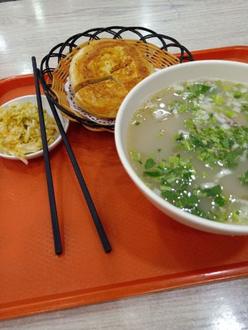 在大同城墙西门转悠发现了这家美食店,就顺着导航走过去。里面环境干净卫生整洁,阿姨服务挺不错的。要了份羊杂割套餐,等的时间不长就上桌了。羊杂割汤色浓郁,自己添加葱花、葱花,加上羊杂、粗粉条,味道香浓。里面羊杂份量也不上,配上辣饼子,热量满满,店家还送份小菜,吃起来酸爽可口。总之,还是非常不错的。