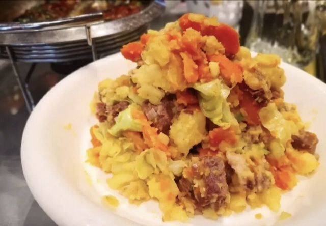 心如旅途!不得不爱老爷庙的炖牛肉,真的太好吃了。块的大小适中,肥瘦相间,瘦肉熟烂不柴,肥肉满口香浓,上次看邻桌阿姨点就很馋,这次终于吃到了果然非常值得一试。菜羊杂个人觉得比粉羊杂好吃,素菜啊豆制品都在里面配合羊血羊杂碎很够味又不会腻口,配米饭很赞。朋友大加赞扬说好吃。大花卷其实是噱头,综合性价比真的不太行,点一次就可以了,没必要再试了。韭香茄子很好吃的小菜,够蹿的香气很刺激。每次都爱点她们家的香菇蒸鸡,清蒸的鸡汤里面有大块去骨的鸡腿肉,清爽又滋补,四十多一大盆,非常合适。羊肉鲜菜上来很壮观,一大盆,羊肉很嫩不膻气,大块头的量很足,蔬菜平衡了油腻感,胡萝卜,洋白菜,土豆化成泥,能吃出素菜点鲜美,带着羊肉过瘾又健康,好吃极了。