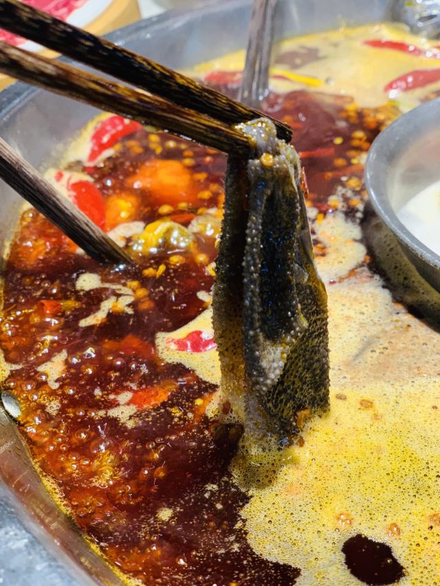最后一天宜宾的最后一餐来到这家人气火锅店,当地天天爆火,还谢绝预约。要不是我们赶飞机出发早五点就过来吃晚餐,估计就要排队久久了。 果然食材都是新鲜鲜粉嫩嫩的,尤其图一是不是像极了西班牙火腿,薄薄一片油亮亮的。份量也是够吓人!一片至尊辣牛肉真的有巴掌大!超大号的盘吃起来太过瘾了。自选台的水果点心可以吃到饱,印度抛饼薄如纸,脆脆甜甜不停口呢!