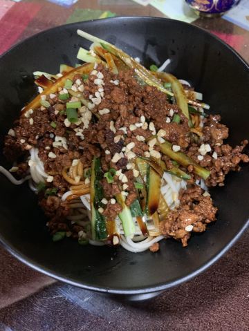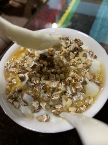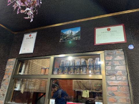 甘南旅游来到朗木寺镇,晚上出来寻找吃饭的地方,没想到旅游地方竟然还有这么美味优惠的店。点了渣渣面一碗15元,类似于炸酱面,麻麻的花椒香,肉末非常多,量大,唯一缺点就是有点咸。另外要了一份酸奶,上面撒有蜂蜜、花生碎和青稞粒,青稞有点硬,牙不好的可以说一声不要,非常好喝的酸奶。小店只有5张桌子,常常需要等位子。其他的菜据说也不错,而且价格实惠。