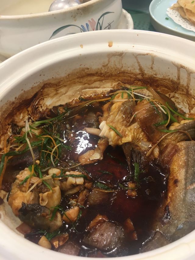 阿甘酒家在桂林很是有名气哟……很多食客前来帮衬的,并且有很多家分店,多在闹市中,而且出品也很不错,这一道酸辣猪手,好吃,酸笋搭配上,开胃。
