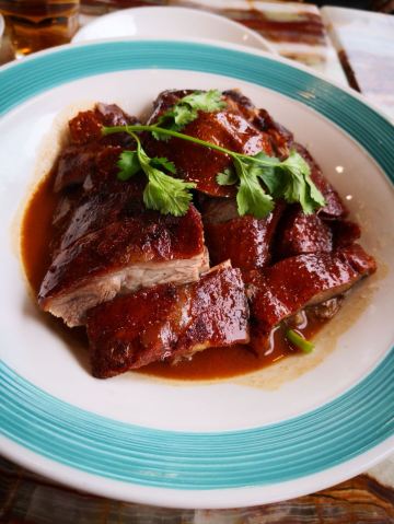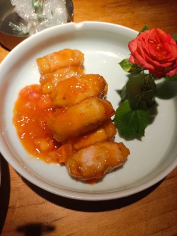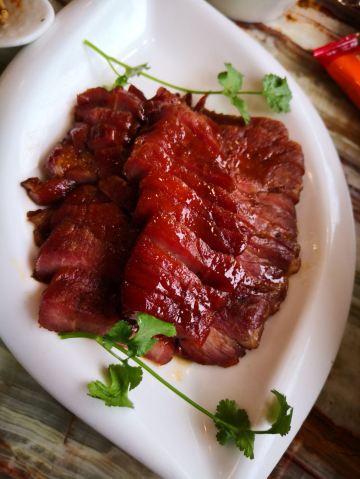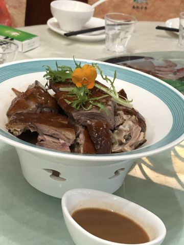 卖牛奶的猪来桂林,来椿记,一定就是要吃烧鹅的了。因为这家是一个朋友临时推荐我过去吃的。相比较于广东的烧鹅,椿记烧鹅毕竟是广西的,所以在吃法上会有一点点的不一样,例如,他的蘸料是需要调制的,味道比较浓一点,而广东的烧鹅一般情况下会保留原本在鹅肚子里的汤汁。椿记烧鹅吃起来会显得更加有层次感吧!出门记得瑶柱冬瓜汤也挺好喝的。以前不太喜欢在外面喝汤,因为外面的汤实在放太多味精了,不习惯,但是椿记的因为有瑶柱,所以那种鲜味感觉上还是比较正常的食物原本的鲜味吧!小黄鸭是我特意点的,因为看着比较可爱,但是又有点舍不得吃呢!鸡爪子也是我特别喜欢吃的,顺便点了一个凉菜。这么多东西,一个人吃,有点太多了,不过只花了100块钱,挺值得的,多几个人的话人均价格一般都在50左右!所以价格还是很实惠的!