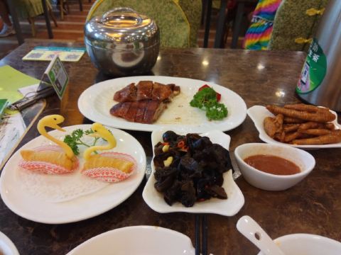 Chunji椿记烧鹅不愧是桂林网红店,过年期间人气很旺,但是服务态度很好,上菜速度很快,椿记烧鹅的味道确实点赞,特别赞的是服务看到我带了小孩还免费送了一个蒸鸡蛋,菜可以根据人数点小份中分大份的非常棒,特别喜欢烧鹅的9地道,还送了水果,太棒了!