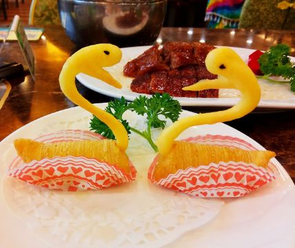 椿记是桂林非常有名的餐馆,这里的菜揉合了湘粤菜系及桂林地方风味的特色,其中烧鹅是招牌菜,以皮脆肉嫩、鲜美不腻而著称。此外,榴莲酥、流沙包、酱爆鹅肝等菜品也做得很出色。椿记在桂林和阳朔都有分店,餐厅就餐环境不错,服务员也很热情,但由于椿记的生意很好,所以建议提前预订座位。