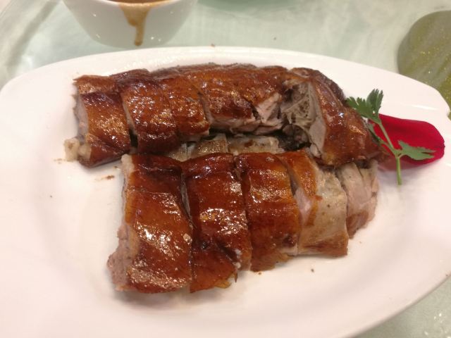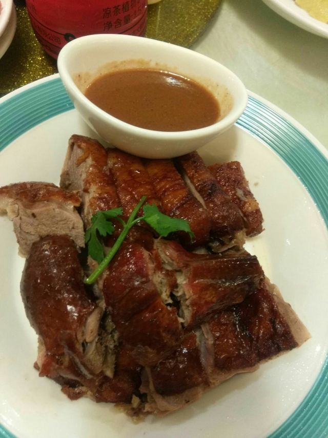 小花牛牛808俩人第一次出来玩儿,第一顿饭便是这家网上点击率很高的椿记烧鹅(说句实话,图片永远是清晰诱人的,描述总是令人浮想联翩、心驰神往的)—— 【环境】外观大气恢弘,有种国营饭店的气派——椿记烧鹅四个红色大字苍劲有力,七魄非凡,引人前往;走进里面,发现大厅宽广无边,天花板吊灯模仿西式水晶灯,四周有内嵌灯,相映成辉;中间是大厅,还有液晶屏,为圆桌,四周是小方桌,看样子承办酒席没问题。但是,总感觉不舒服——有种旧时代农村流水席的赶脚——明明灯火辉煌、窗明几净的饭店,却给人一种驿站的环境,美中不足,弄巧成拙啊。 【卫生】窗明几净,餐具油光锃亮,菜肴干净油亮,桌椅纤尘不染。 【服务】服务员很忙,如果你保持沉默,服务员是很难注意到你的。但只要你有要求,服务员一定随叫随到,且尽职尽责——时刻关注你需要什么、还有哪些菜需要上、主动给你添茶。 【味道】点了如下五种。 招牌烧鹅:小猪喜欢——劲道有力,口感粗糙,外酥里嫩,香而不腻。 炒笋丝:小猪喜欢——清淡解腻,爽滑可口。 蜜汁叉烧:外酥里嫩,软硬适中,甜而不腻,令人垂涎,意犹未尽。我喜欢[耶] 牛肉生煎包:和在北京吃的生煎不一样——北京的生煎多模仿苏沪杭——皮薄馅大,汤汁肥美;这里的生煎皮厚肉少,面硬耐嚼,肉松不香,生无可恋,需要不停喝水。。。。。。小猪居然喜欢[发呆] 流沙包:我的最爱——松软滑爽,入口即化,热气腾腾,香气扑鼻——表面是卡图图案的掺有黄油的小麦面,里面是实惠香滑的咸蛋黄,咸甜适中,毫不起腻。 总体而言,除了环境略有遗憾,其他体验很满意!