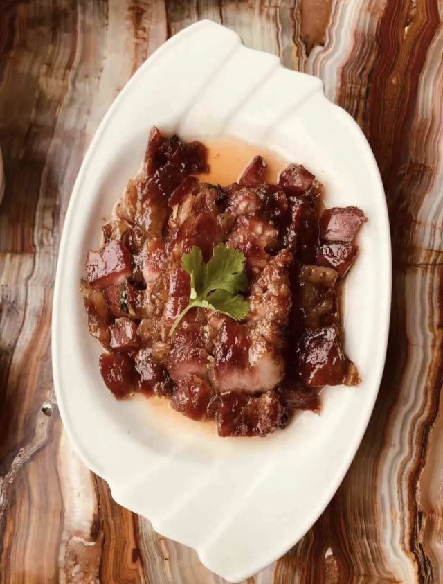 Chunjishao'e (jianganlu)俩人第一次出来玩儿,第一顿饭便是这家网上点击率很高的椿记烧鹅(说句实话,图片永远是清晰诱人的,描述总是令人浮想联翩、心驰神往的)—— 【环境】外观大气恢弘,有种国营饭店的气派——椿记烧鹅四个红色大字苍劲有力,七魄非凡,引人前往;走进里面,发现大厅宽广无边,天花板吊灯模仿西式水晶灯,四周有内嵌灯,相映成辉;中间是大厅,还有液晶屏,为圆桌,四周是小方桌,看样子承办酒席没问题。但是,总感觉不舒服——有种旧时代农村流水席的赶脚——明明灯火辉煌、窗明几净的饭店,却给人一种驿站的环境,美中不足,弄巧成拙啊。 【卫生】窗明几净,餐具油光锃亮,菜肴干净油亮,桌椅纤尘不染。 【服务】服务员很忙,如果你保持沉默,服务员是很难注意到你的。但只要你有要求,服务员一定随叫随到,且尽职尽责——时刻关注你需要什么、还有哪些菜需要上、主动给你添茶。 【味道】点了如下五种。 招牌烧鹅:小猪喜欢——劲道有力,口感粗糙,外酥里嫩,香而不腻。 炒笋丝:小猪喜欢——清淡解腻,爽滑可口。 蜜汁叉烧:外酥里嫩,软硬适中,甜而不腻,令人垂涎,意犹未尽。我喜欢[耶] 牛肉生煎包:和在北京吃的生煎不一样——北京的生煎多模仿苏沪杭——皮薄馅大,汤汁肥美;这里的生煎皮厚肉少,面硬耐嚼,肉松不香,生无可恋,需要不停喝水。。。。。。小猪居然喜欢[发呆] 流沙包:我的最爱——松软滑爽,入口即化,热气腾腾,香气扑鼻——表面是卡图图案的掺有黄油的小麦面,里面是实惠香滑的咸蛋黄,咸甜适中,毫不起腻。 总体而言,除了环境略有遗憾,其他体验很满意!