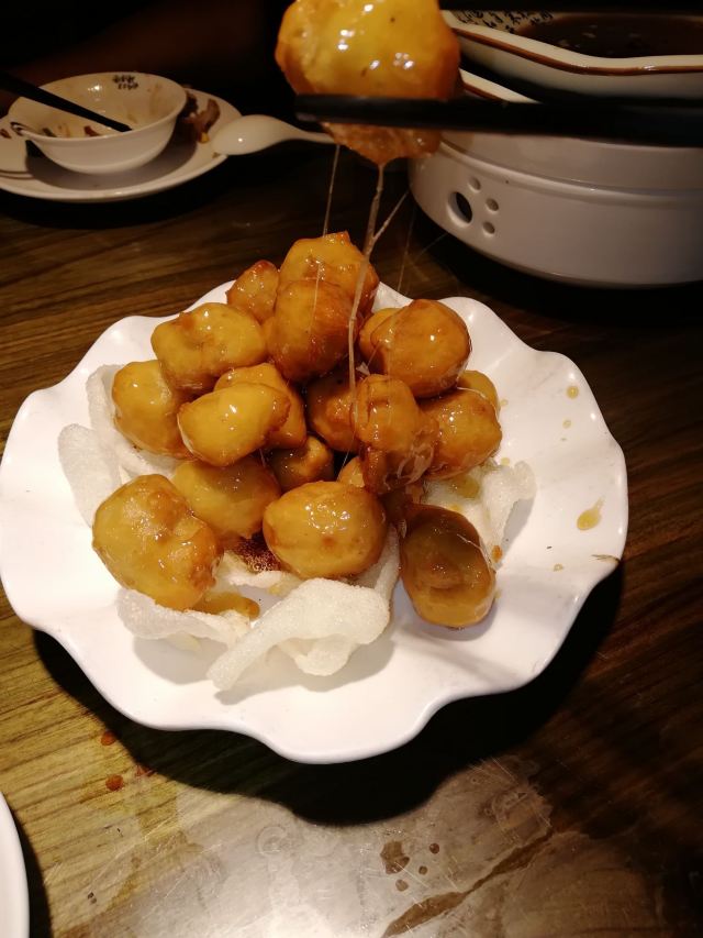 麻婆豆腐,入口即化,既辣且麻,水果酸菜鱼,鱼肉发甜,酸甜爽口,拔丝芋头,香粉软糯,甜度适中,流沙包,奶香浓郁,皮薄馅多。