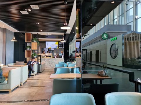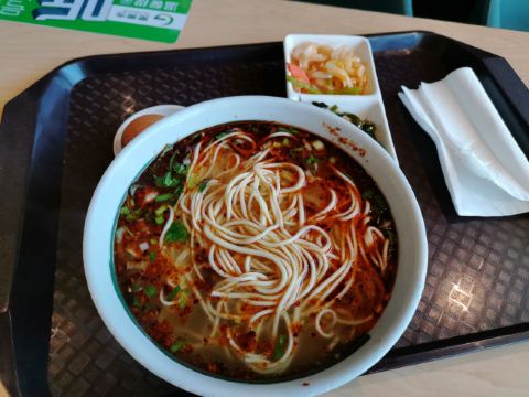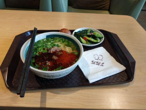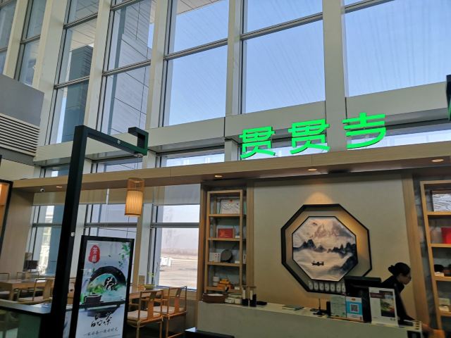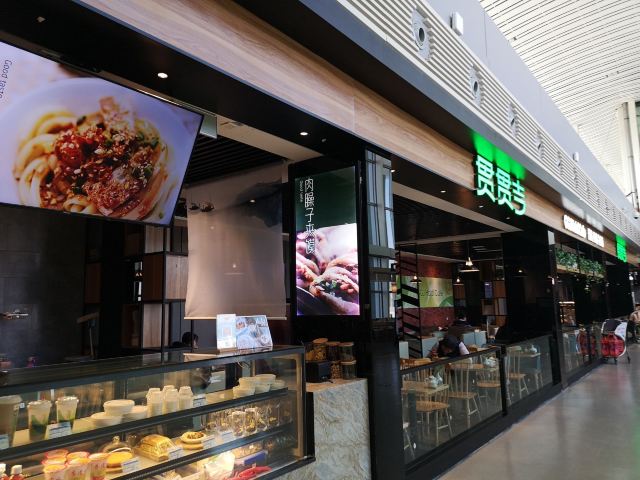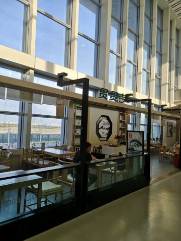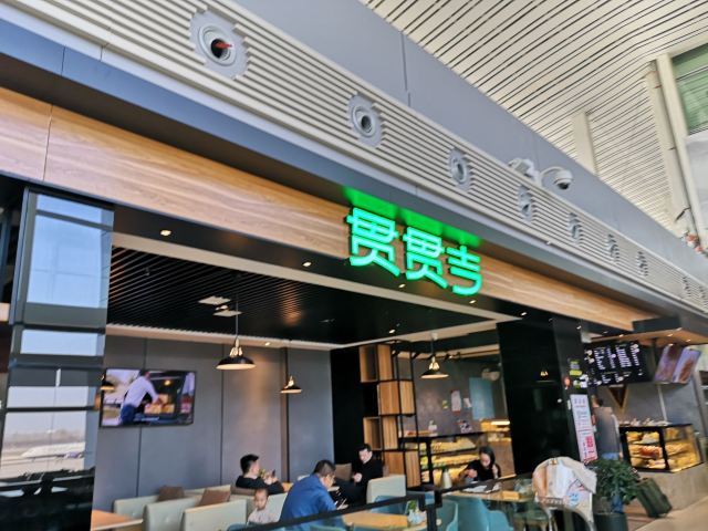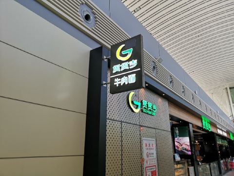兰州中川机场转机 给了一张餐券 内容是牛肉面 也看了 某些网友的点评 就打算去尝试一下~ 结果 到了店里 选择了面的宽度 收银员有说牛肉数量很少 ,但最后给的只是只是 牛肉汤 汤面,没有一片 牛肉 ,没有牛肉。没有配菜 。一切一切都没有~~ 感觉略略失望 因为套餐也只是28元,我想要加东西也可以,但请收银员 告知清楚啦~~ 贯贯吉 在走廊两侧都有食客位子