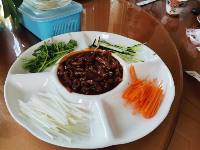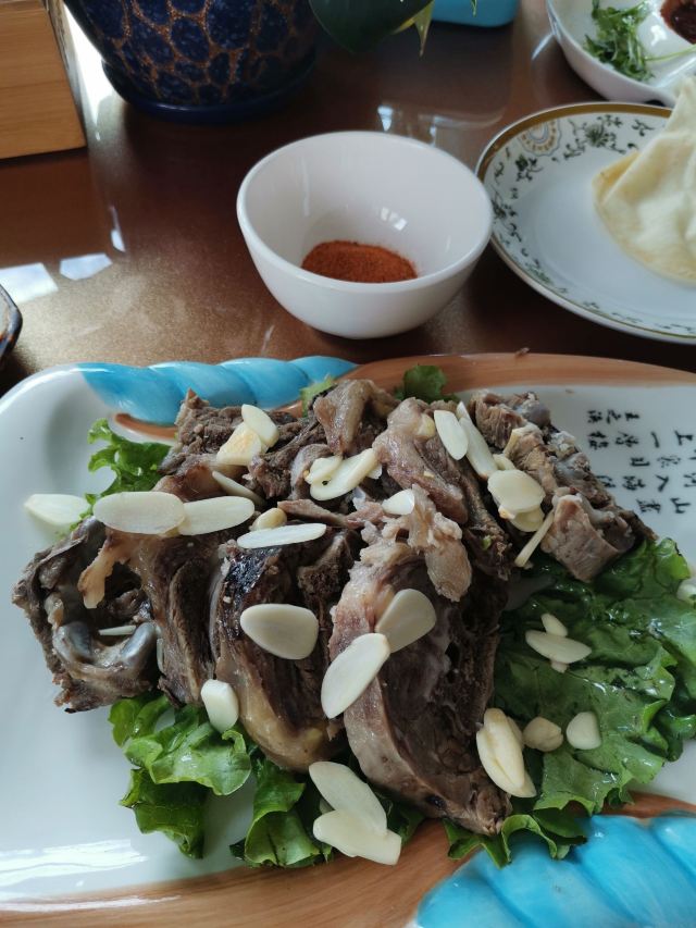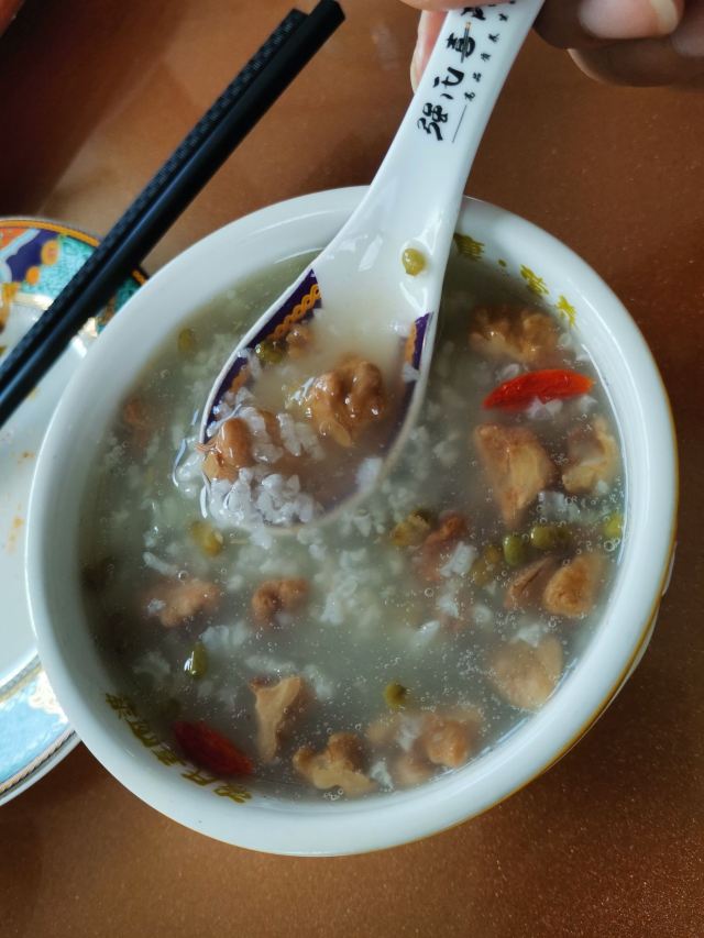 【位置】在明清街(仿古街)里,有两层楼。我们人多就去了二楼最里面,半封闭式包厢。 【环境】可能有些年头了,没有敦煌的喜阿婆店干净。 【口味】 -手抓羊肉:在大西北难得吃到这么难吃的手抓… 可能是我们点错了菜吧,在这里还是粥好喝。用料比较足,煮的时间长,米都散发出本来的香味了。