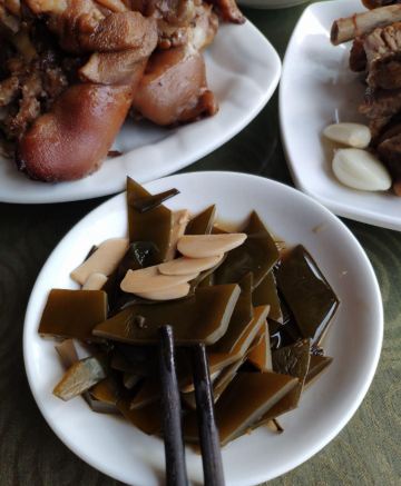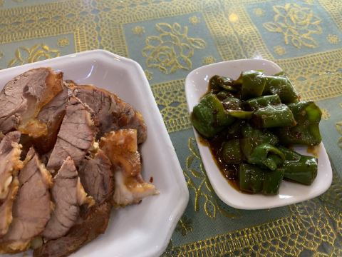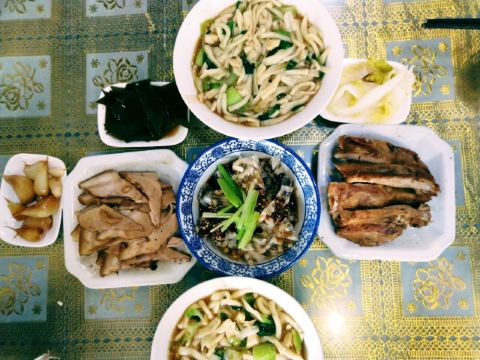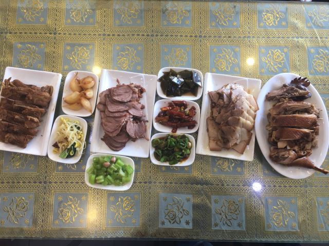 荤炒炮,素炒炮,卤排骨,猪蹄,酱牛肉,猪皮冻,卤肉,糖蒜,四样小菜,面汤,烧鸡,笋丝,青椒小菜,烤鸡,炒炮