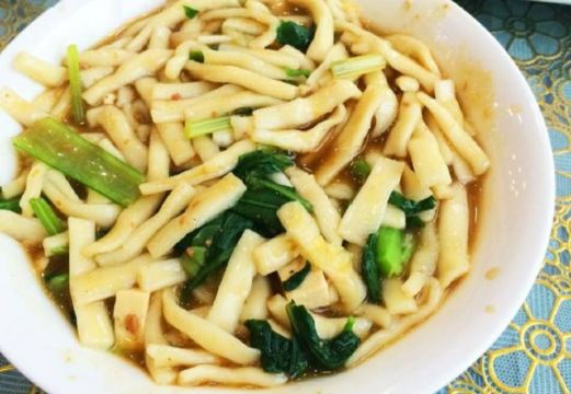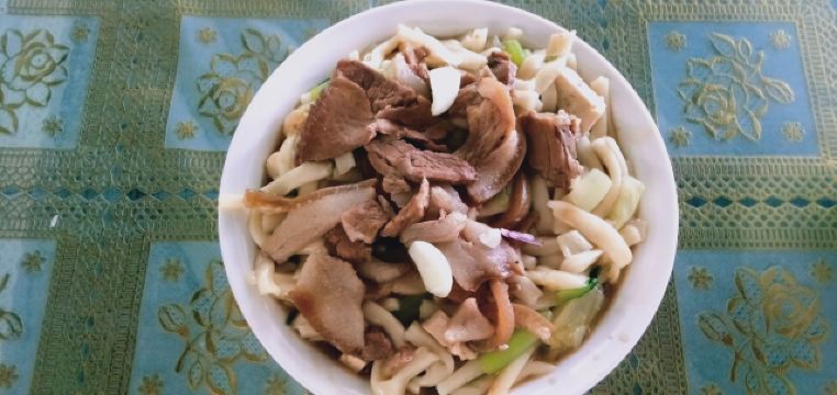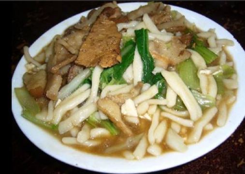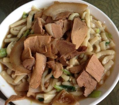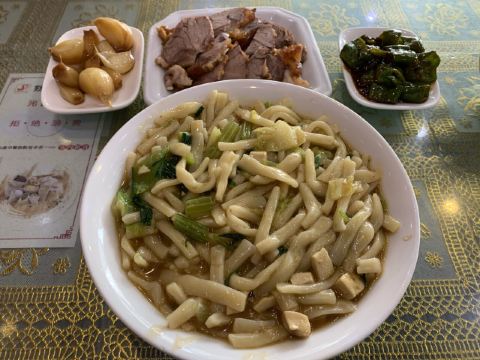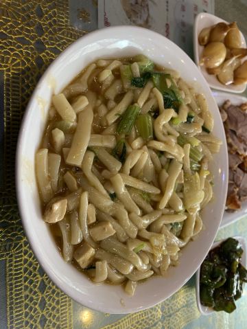 fy****234要说来张掖有什么特色的好吃的,这家孙记炒炮肯定是能排的上号的,作为老字号饭店,位置也是非常好的,离市中心鼓楼相当近,店门就开在拐角处。 这里的特色是炒炮,也就是短的面食,主要也就两种吃法,素炒炮相对清淡一些,荤炒炮多了不少肉,肉量很足但是肥肉居多,有点腻的感觉。大份的量很厉害,不过这里上面的速度比较慢,等了好久才拿到。 卤肉也是这家的特色,这里是先称份量然后去按份量结账的,份量是干称的,切完之后会用汤汁再浇几遍,特别的香,不过里面肥肉部分不少,吃下去有点腻。另外这家的小菜品相也不错,可以挑喜欢的试试。 总的来说非常推荐,一顿下来价格也不算贵,两个人吃撑过去了基本,南方人过来点菜还是得悠着点。