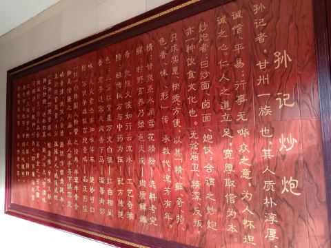 每到一地必然吃一点当地的美食,个人认为美食不一定是精美、价高的,而是当地人和游客喜欢能接受的,一块豆腐、一碗面、做的有特色有本地风味、风俗习惯那一定是美食。张掖是第二次来了,除了看风景看古迹那一定要吃一碗炒炮了,孙记炒炮算是名牌店了,一个人吃不了太多,简单一碗,一碟牛肉,一碟糖蒜,吃的饱,很舒服。