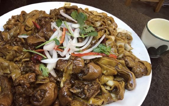 属于一家老店,不夸张的说味道绝对是好吃到爆炸,尤其这个卷子鸡,有点像东北菜的味道,特别适合北方人的口味,老板娘的服务也很好。