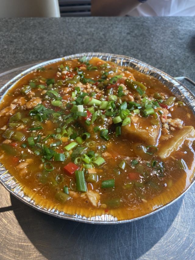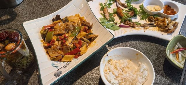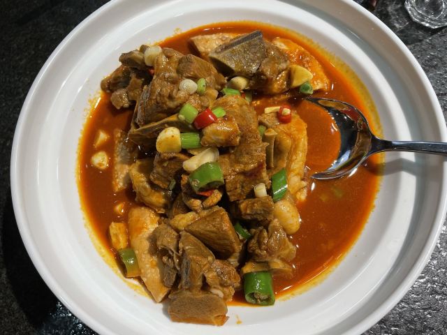PENG XIN LAMB NATIONAL这好评不知道是怎么来的。刚进门就没有一个人,我大声叫了一声后,有一个在睡觉的老板起来问我干什么。我说来这是吃饭的。她很不情愿的说吃什么?我问菜单呢?她说墙上扫码点。点了一斤烤羊排,一个酸辣羊肚,一个米饭,一个三泡台。羊排还凑合,羊肚没炒熟,又去炒了一次也咬不烂。一个人吃了160元。还没吃饱。除了价格高没一点好的地方。好评第一搞不懂是怎么来的。洋葱还有外皮直接上了。