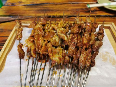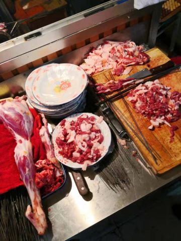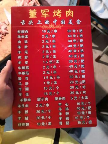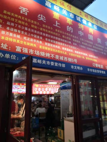 要说嘉峪关有什么特别有名的东西的话,市内基本上推荐的也就是烤肉了,董军烤肉作为网红,宣传还是比较厉害的,第一次下午3点多过来接货来早了,发现店家都在串羊肉串,压根没开门,晚上第二次来才赶上。 这里其实除了董军,其他边上的也都是差不多的烤肉店,连价格都是一样的。感觉比较一般。不过这里的烤串都是按大把小把来算的,相对来说这里的口味很重,加的香辛料比较多,吃多了就觉得咸了。 作为游客来说过来吃吃还是可以的,要天天吃估计也受不了吧